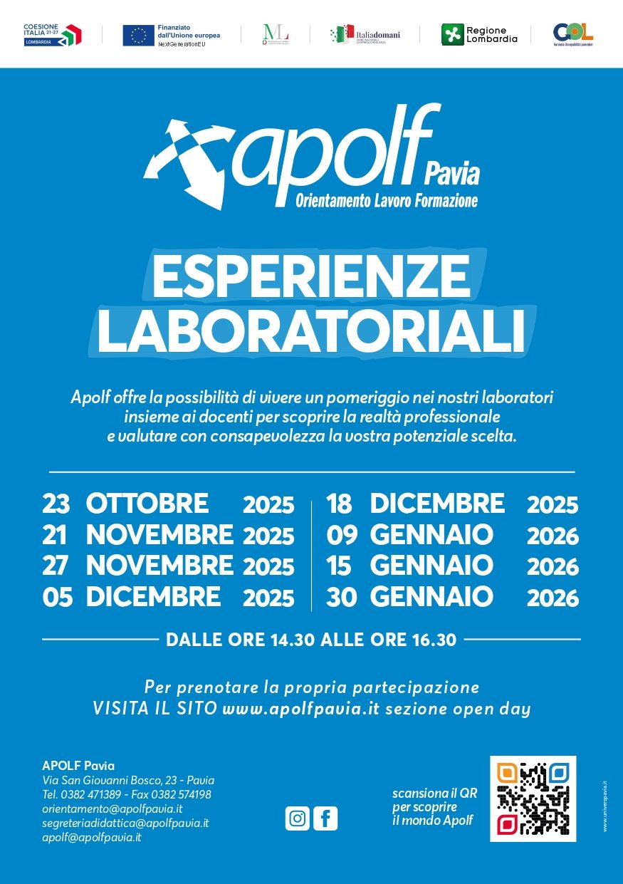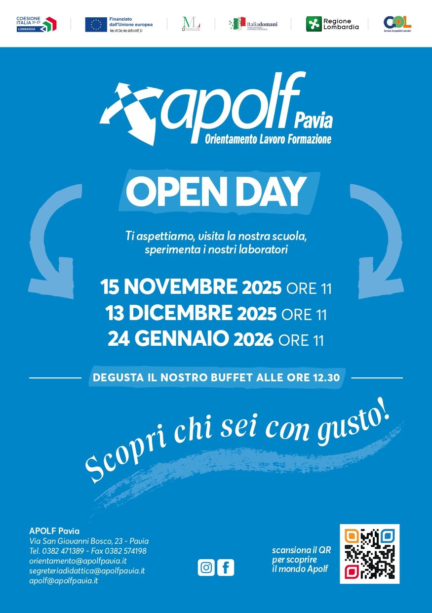 Le iscrizioni alle classi prime per l’anno formativo 2026/27 possono essere presentate dalle 8:00 del 13 GENNAIO 2026 alle 20:00 del 14 FEBBRAIO 2026 attraverso la pagina dedicata alle iscrizioni online all’interno della Piattaforma Unica: https://unica.istruzione.gov.it/it/orientamento/iscrizioni ISCRIZIONE IN MODO AUTONOMO Se sei genitore o eserciti la responsabilità genitoriale su alunni o studenti da iscrivere, accedi alla Piattaforma Unica con la tua identità digitale SPID, CIE, CNS o EIDAS. L’iscrizione in tre passi 1. Compila la domanda 2. Inoltra la domanda 3. Segui l’iter della domanda 1. Compila la domanda Al primo accesso ti verrà chiesto di confermare o completare i tuoi dati personali, quindi potrai iniziare a compilare la domanda di iscrizione. La domanda si compone di tre sezioni da compilare con i dati dell’alunno, della famiglia e di almeno una scuola , quella di prima scelta. Le scuole indicate come seconda e terza scelta saranno coinvolte, una dopo l’altra, solo nel caso in cui la prima non abbia disponibilità di posti per il nuovo anno scolastico. Le sezioni della domanda possono essere compilate in tempi diversi e, quindi, se desideri fare una pausa, puoi salvare le informazioni inserite senza inoltrare la domanda . 2. Inoltra la domanda Visualizza l'anteprima della domanda per verificare la correttezza dei dati inseriti, quindi effettua l’inoltro. La domanda sarà inviata alla scuola che hai indicato come prima scelta . Riceverai un’email a conferma dell’invio della domanda. Fai attenzione: la domanda inoltrata non può essere modificata. Se devi fare delle modifiche contatta la scuola destinataria della domanda che potrà rimetterla a tua disposizione entro il termine delle iscrizioni. 3. Segui l’iter della domanda Terminato il periodo riservato alle iscrizioni, la scuola di destinazione che ha preso in carico la domanda conferma l'accettazione oppure, in caso di indisponibilità di posti, la indirizza alla scuola che hai indicato come soluzione alternativa. Puoi seguire l'iter della domanda dalla tua area riservata su Unica. Riceverai anche per email tutti gli aggiornamenti sullo stato della domanda fino alla conferma di accettazione. Gli stati che può assumere la domanda sono i seguenti: Inoltrata Restituita alla famiglia Accettata Smistata ad altra scuola Informazioni utili: Per APOLF il codice è PVCF012002 Assegnare priorità 1 al percorso formativo scelto e indicare anche una seconda e terza scelta tra i percorsi disponibili. Per APOLF i percorsi formativi proposti sono i seguenti: Operatore della Ristorazione – Preparazione degli alimenti e allestimento piatti (Cucina) Operatore della Ristorazione – Allestimento sala e somministrazione piatti e bevande (Sala Bar) Operatore delle Produzioni Alimentari – Lavorazione e produzione di pasticceria, pasta e prodotti da forno (Pasticceria/Panificazione) Operatore Informatico Percorso Personalizzato per allievi con disabilità – Operatore della Ristorazione – Preparazione degli alimenti e allestimento piatti (Cucina) ISCRIZIONE CON IL SUPPORTO DI APOLF La Segreteria Didattica di APOLF è a disposizione delle famiglie per gestire ed effettuare le procedure di iscrizione. Coloro che volessero usufruire di tale supporto sono pregati di non procedere autonomamente alla registrazione e di prendere appuntamento con la Segreteria Didattica, anche prima della data di inizio stabilita dal ministero. La Segreteria Didattica attiverà il servizio di supporto a partire dal 13/01/2026 al fine di raccogliere in tempo utile tutti i dati necessari all’iscrizione. Per poter finalizzare l’iscrizione si ricorda che le famiglie dovranno portare con sé: Copia della carta d’identità del figlio/a e dei genitori/tutore; Copia del codice fiscale del figlio/a e dei genitori/tutore; Copia del permesso di soggiorno per allievi stranieri non UE; Per gli allievi con disabilità, copia dell’estratto del verbale di accertamento medico-legale (EVIS) ai fini dell’inclusione scolastica Per fissare l’appuntamento è possibile contattare la Segreteria al numero 0382. 471389 nei seguenti orari: dal lunedì al venerdì dalle 9.00 alle 12.00 e dalle 14.00 alle 16.00.